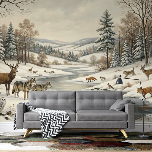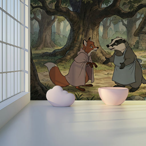 View full detailsA stunning stylized landscape mural inspired by Art Nouveau. It features a symmetrical framing of trees intertwined with mythical birds, looking o...