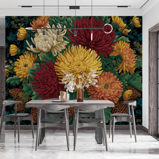 View full details· Embrace the opulence of heritage design with this stunning classical floral wallpaper. Featuring a lush arrangement of vibrant chrysanthemums and...