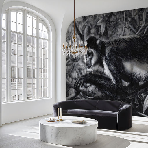 View full details· Celebrate the raw beauty of nature with this stunning monochrome wildlife mural. Featuring a Colobus monkey perched among dense tropical leaves, ...