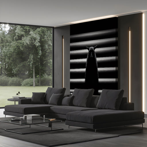 View full detailsThe Dark Symmetrical Horizontal Pipes and Creature Wall Mural features a mysterious and intensely dramatic front-facing silhouette of a dark animal...