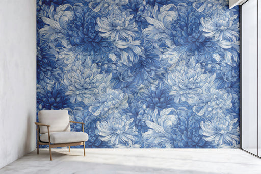View full detailsThe Classic Blue and White Floral Bloom Wall Mural features an incredibly dense, beautifully illustrated seamless pattern of lush, blooming chrysan...