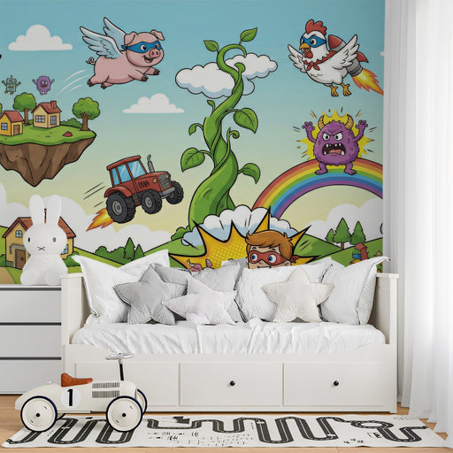 View full detailsThe Action-Packed Superhero Farm Adventure Wall Mural features a highly energetic, comic-book style illustration of a vibrant farm taken over by su...