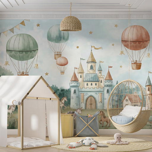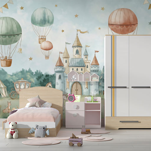 View full detailsThe Magical Watercolor Fairytale Castle Landscape Wall Mural features a breathtaking, soft-toned illustration of an enchanting royal landscape, com...