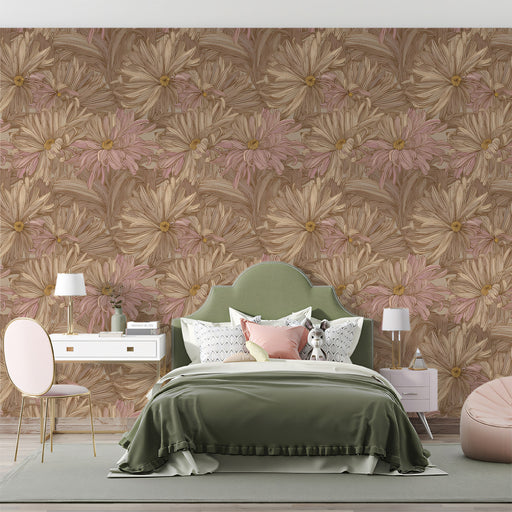 View full details· This wallpaper features a dense repeating pattern of detailed chrysanthemum heads in a sophisticated sketch style, creating a calm and romantic a...