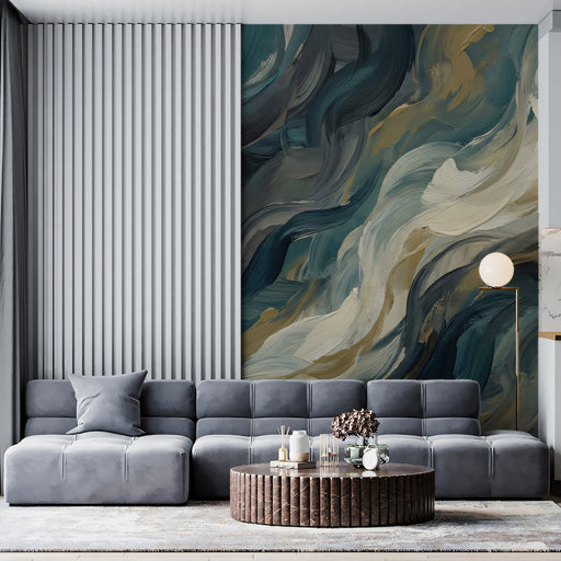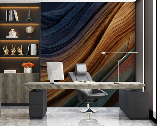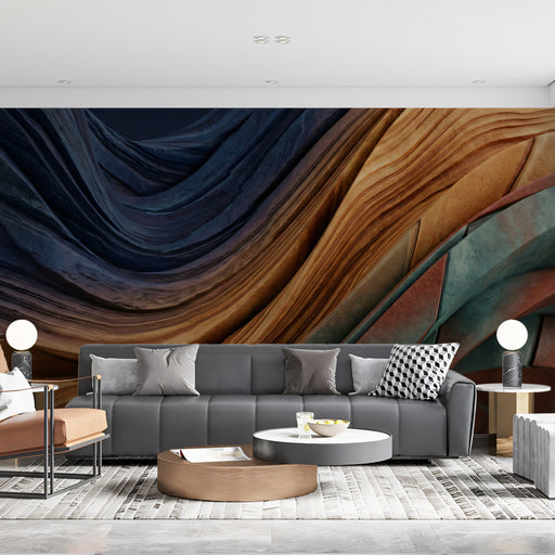 Add a touch of modern drama with this abstract 3D textured mural. Featuring flowing, fibrous lines in deep shades of petrol blue, teal, and charcoal, the design mimics the movement of underwater currents or combed silk. The high-contrast shadowing gives the wall a rich, tactile appearance, perfect for creating a moody, sophisticated atmosphere in a bedroom, bachelor pad, or contemporary office.