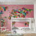 Geo-Political Abstract World Map Mural Wallpaper | Intense Multicolor, High-Detail Fragmentation, Pink Backdrop