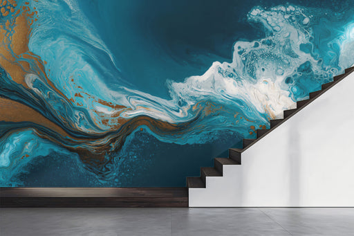 View full detailsOcean Waves Mural Wallpaper | Teal & Gold Fluid Art Marble