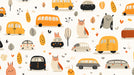 Kawaii Car & Owl Doodle Pattern | Cartoon Animals, Autumn Tones, Whims — Vivawalls Store Skip to content