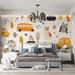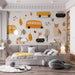 The Kawaii Car & Owl Doodle Pattern is a soft and quirky design. The repeating motif features friendly cartoon cars (buses, minivans) in orange and yellow alongside whimsical animal characters (owl, bunny, creature-cars) and autumn-toned leaves. The soft color palette and playful composition create an imaginative and cozy atmosphere. This mural is ideal for a kindergarten classroom or a child's unique bedroom.