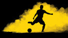 Striking Soccer Silhouette Mural Wallpaper | Black and Yellow Contrast, Smoke Cloud, Dynamic Kick