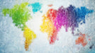 Impressionist Rainbow World Map Mural Wallpaper | Oil Painting Texture, High Energy, Vivid Color Blocks