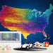 Rainbow Starburst USA Map Mural Wallpaper | Vibrant Colors, Glitter Effect, Patriotic Night Sky Theme