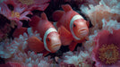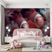 Macro Clownfish in Pink Anemone Mural Wallpaper | Surreal Red and Pink Palette, Extreme Close-Up