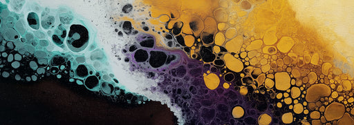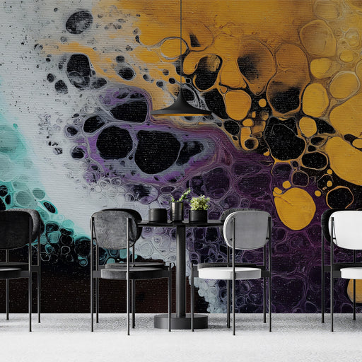 Lumin Art House· A captivating display of fluid art featuring teal and golden-yellow cells against a dark background. This mural adds a touch of modern glamour an...