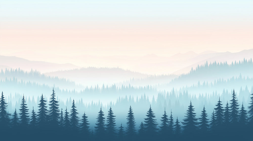 The wallpaper in the home office depicts a serene landscape with a gradient sky transitioning from soft pastel colors to a forest of green pine trees at the bottom. It creates a peaceful and inspiring environment for work. The large - scale mural gives an illusion of a window to the outdoors, bringing a sense of nature indoors and helping to reduce stress. The shadows cast on the wall add a dynamic touch.
