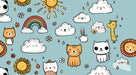 Doodle Animal Cloud Wallpaper | Hand-Drawn, Kawaii, Light Blue Nursery — Vivawalls Store Skip to content