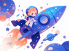 The style is playful and child-friendly, with a focus on space exploration and adventure. This wallpaper would be ideal for a child's bedroom or playroom, as it can bring a sense of wonder and creativity to the space. It could also work well in a themed party room or a classroom to add a fun and educational element.