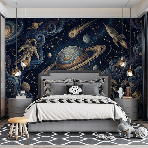 Vivawalls's Tips: The ideal backdrop for a budding scientist or astronomer. It fits perfectly in a study, a library, or a boy's bedroom. The greyscale palette allows you to introduce bold accent colors like red or blue in the room's decor.