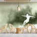 The Ethereal Soccer Silhouette Mural Wallpaper is a soft, minimalist, and highly atmospheric artwork. It features the white silhouette of a player mid-kick, emerging from and blending into swirling, pale sage-green and off-white smoke clouds. The light, near-monochrome palette and soft, painterly smoke texture create a sense of quiet movement, serenity, and ghost-like elegance. This mural is ideal for a cafe, a minimalist living room, or a space where athletic themes are desired in a subdued, artistic format.