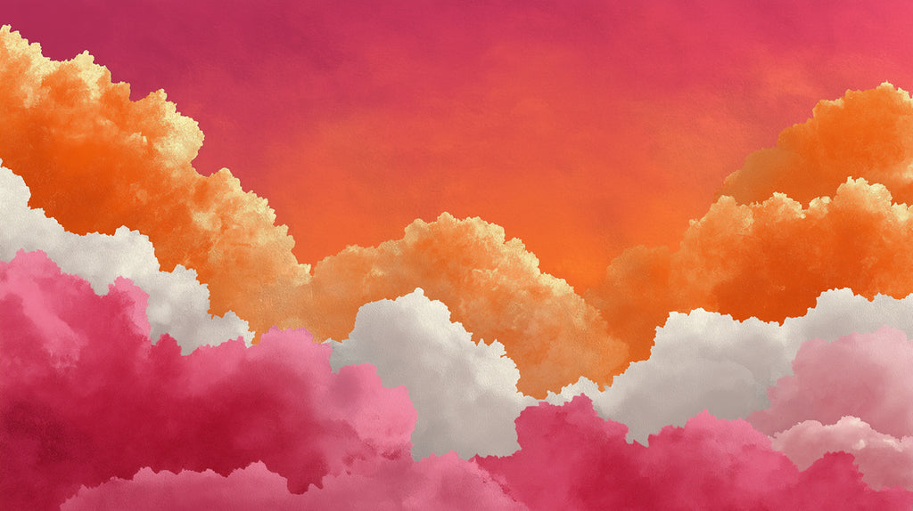The Dreamy Cloudscape Mural Wallpaper is a whimsical and imaginative piece of modern art. The design features a surreal sky scene with a beautiful gradient from a warm orange-red to a soft pink, filled with stylized, fluffy clouds in a blend of pastel pink, white, and golden yellow. The graphic, simplified shapes create a sense of peaceful serenity and artistic freedom. This mural is a captivating choice for a tranquil nursery, a dreamy bedroom, or a peaceful cafe that seeks a unique and calming atmosphere.