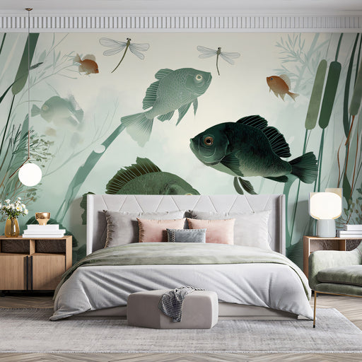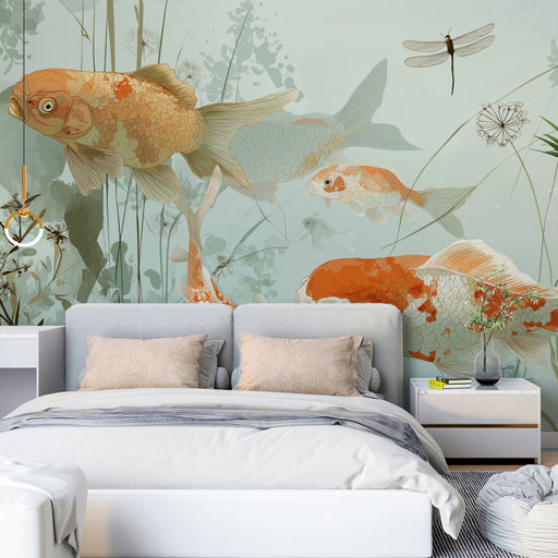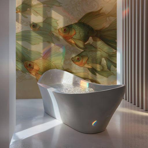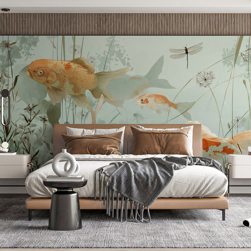 The style is a blend of aquatic and cosmic themes, making it suitable for a commercial space, especially one with a modern or eclectic decor. It can also be a great addition to a bedroom, fostering a peaceful and imaginative environment. The wallpaper's design is likely to appeal to those who are drawn to the spiritual and creative aspects associated with Pisces.