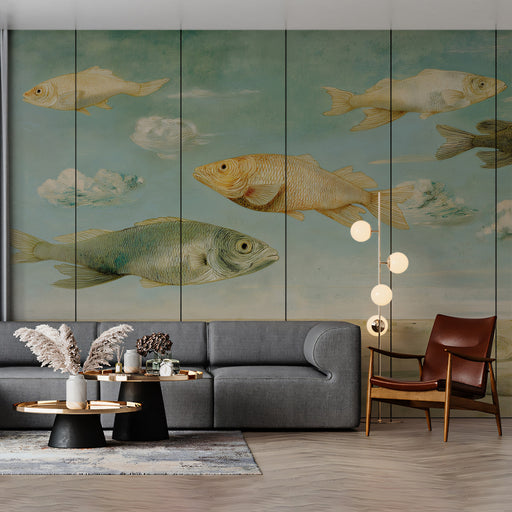Add a safety margin of 6 to 10cm. The total area is calculated in square meters and rounded to the nearest whole number.Pisces - Mystical Fish Mural Wallpaper | Deep Blues, Celestial Sparkles for a commercial space