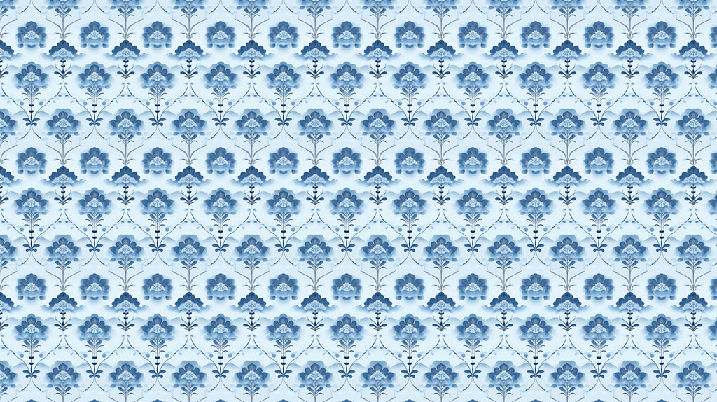 Add a safety margin of 6 to 10cm. The total area is calculated in square meters and rounded to the nearest whole number.Serene Floral Mural Wallpaper | Classic Blue Damask