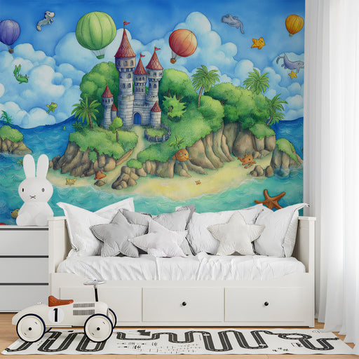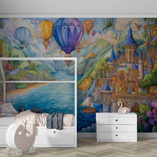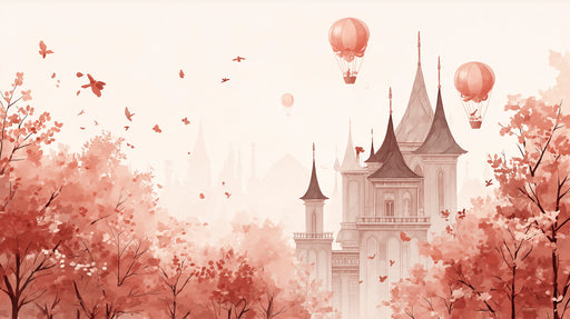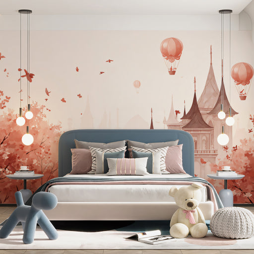 This wallpaper features a steampunk airship flying over a picturesque village. The design is whimsical and adds a touch of fantasy and a unique, vintage-inspired atmosphere to the bedroom. It can make the space feel adventurous and full of character.