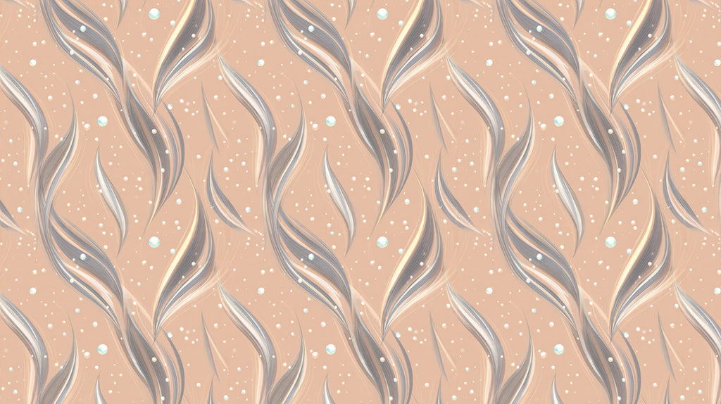 The Woven Botanical Mural Wallpaper is an elegant and dynamic piece of art. The design features large-scale, interlocking, wavy leaf-like forms in shades of silver-gray and taupe, set against a warm dusty rose background. The flowing lines and subtle paint-splatter texture create a sense of elegant movement, while scattered light blue and white dots add a playful, shimmering effect. This mural is an ideal choice for a sophisticated dining area, a chic study, or a dramatic living room.