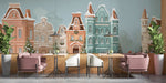 The Pastel Christmas Street Mural Wallpaper is a serene, elegant, and charming artwork. It features a row of snow-covered European-style buildings rendered in soft, muted pastel tones—blush pink, pale teal, and cream. The scene is animated by a tiny depiction of Santa and his reindeer sleigh mid-street, adding a touch of classic Christmas magic. The soft watercolor texture and gentle palette create a tranquil, sophisticated, and dreamy holiday atmosphere. This mural is ideal for a sophisticated restaurant, a festive kid’s room, or a stylish dining room.