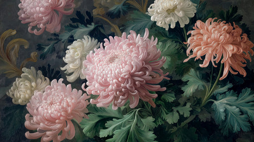 View full detailsElegant Chrysanthemum Painting Mural Wallpaper | Classic Floral Art with Dark Background