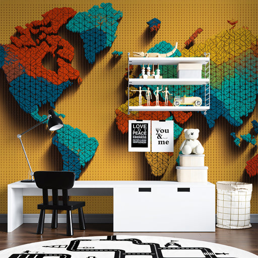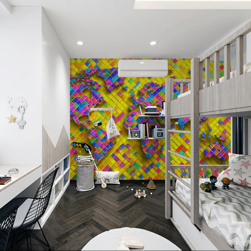 View full detailsPsychedelic Tile World Map Mural Wallpaper | High-Saturation Colors, 3D Relief, Electric Geometric Pattern
