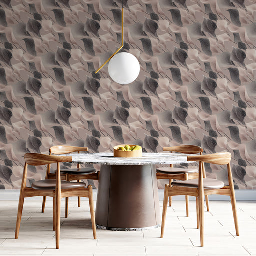 View full detailsWoven Botanical Mural Wallpaper | Flowing Leaves, Dusty Rose, Silver Highlights