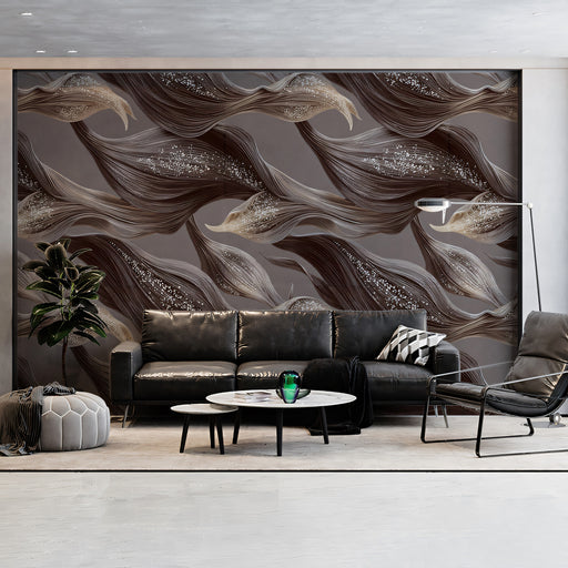 View full detailsLuxury Wavy Leaf Mural Wallpaper | Mocha Brown, Glimmering Texture, Modern Flow