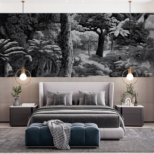 View full detailsDeep Fern Grove Mural Wallpaper | Textured Black and White Nature
