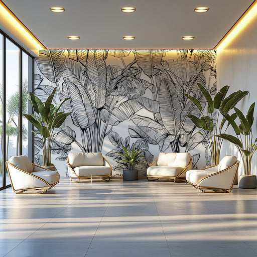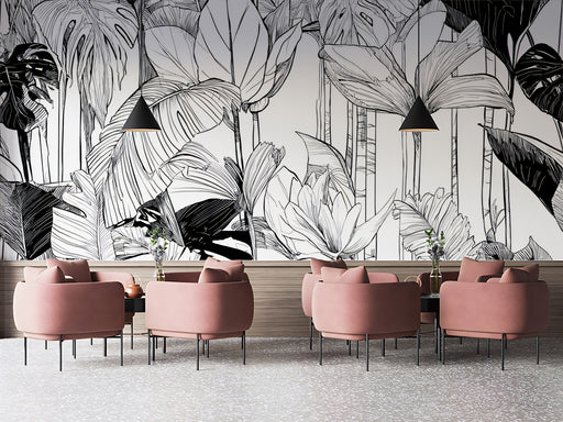 View full detailsMinimalist Tropical Outline Mural Wallpaper | Modern Botanical Line Art