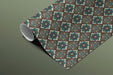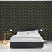 The Micro Diamond Geometric Repeat Mural Wallpaper is a dense, finely detailed, and sophisticated repeating print. It features an intricate pattern of tiny, interlocking diamonds and star-like motifs, rendered in dark gray, deep teal, and earthy gold. The high density and structured arrangement create a visually rich, tactile, and highly elegant backdrop, evoking the look of complex traditional weaving. This mural is ideal for a sophisticated dining room, a serene bedroom, or a lounge area where subtle, rich texture is prioritized.
