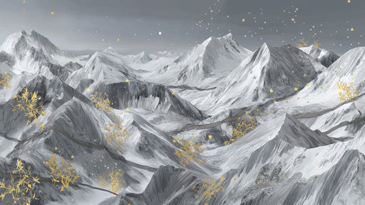 Vivawalls StoreA mesmerizing blend of cold peaks and golden dreams. This artistic mural features a monochrome mountain range under a starlit sky, accented with ha...