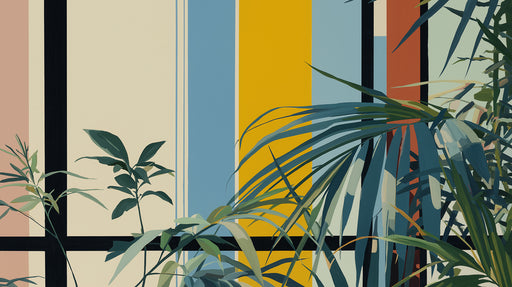 Vivawalls StoreA fusion of mid-century modern and botanical art, this mural features stylized palm leaves against a background of vibrant color blocks. The combin...