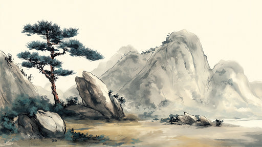 Vivawalls StoreEmbrace the timeless beauty of Oriental art with this serene ink wash mural. Featuring a resilient pine tree rooted among weathered granite boulder...