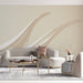 Minimalist Cream Wave Curve Mural Wallpaper | Abstract Fluid Motion, High-Gloss Finish, Serene Monochrome