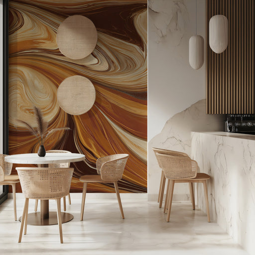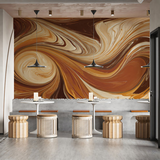 Vivawalls StoreImmerse your walls in the decadent beauty of this abstract fluid art mural. Swirls of rich caramel, chocolate brown, and shimmering gold mix with m...