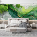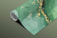 The Green Geode Mural Wallpaper is a luxurious and artistic statement. The design features a stunning fluid pattern in various shades of green, reminiscent of marbled agate or a natural geode, beautifully accented by a prominent gold-dusted "vein" running through the composition. The realistic foliage in the corner adds a touch of natural elegance. This mural is a perfect choice for a glamorous master bedroom, a sophisticated dining room, or an elegant living room, creating a sense of opulence and organic beauty.