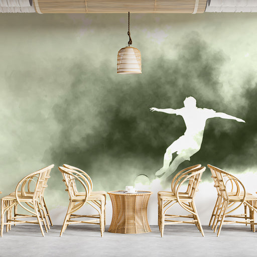 VIVAWALLSThe Ethereal Soccer Silhouette Mural Wallpaper is a soft, minimalist, and highly atmospheric artwork. It features the white silhouette of a player ...