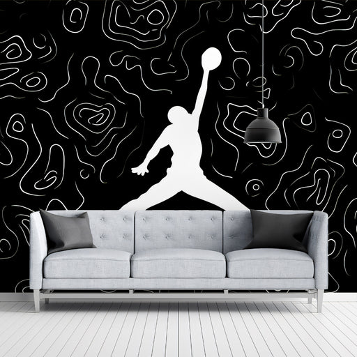 View full detailsBasketball Jump Contour Line Mural Wallpaper | High Contrast, Abstract Topography, Black and White Graphic