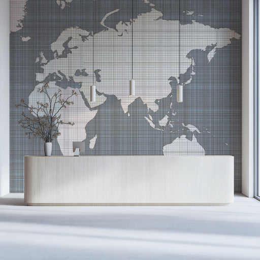 Vivawalls StoreThe Subtle Linen Grid World Map Mural Wallpaper is a soft, textural, and minimalist artwork. The continents are rendered in faint, pale pink and cr...