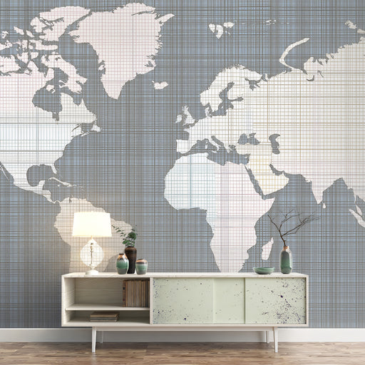 View full detailsMid-Century Grid World Map Mural Wallpaper | Retro Color Blocks, Cartesian Grid, Minimalist Cartography