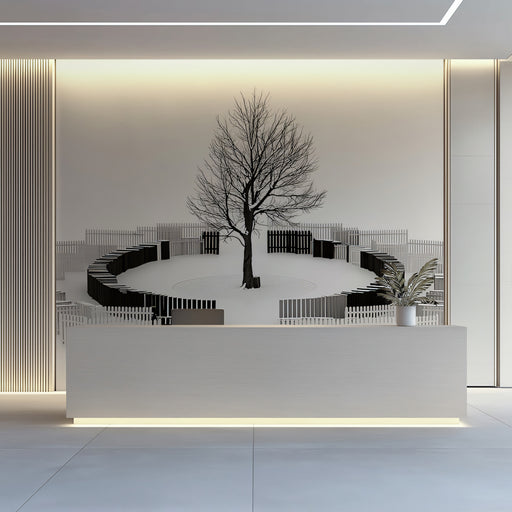 Vivawalls StoreThe Surreal Concentric Fences and Winter Tree Wall Mural features a striking conceptual composition of a solitary, leafless winter tree encircled b...