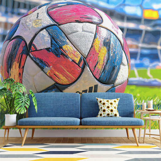 VIVAWALLSThe Abstract Paint Soccer Ball Mural Wallpaper is a hyper-realistic, artistic close-up. It captures a modern soccer ball whose white patches are vi...