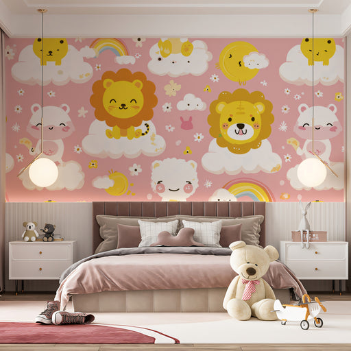 View full detailsCute Animal Cloud Cutout Mural | Vibrant Nursery Art, Panda, Lion & Bunny